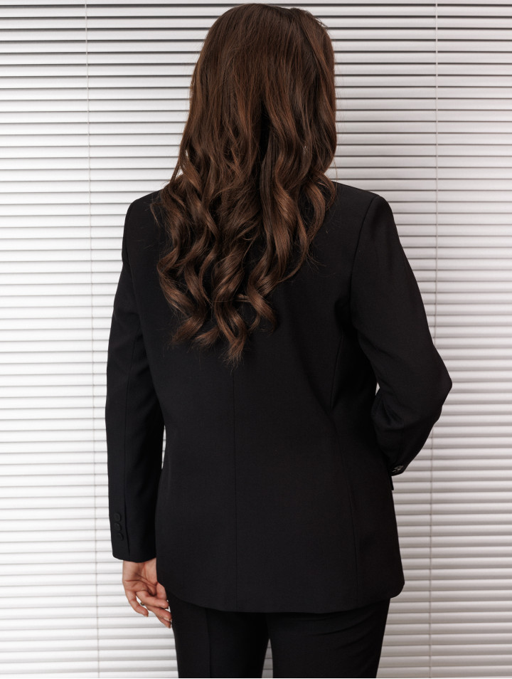 Жакет женский полуприлегающего силуэта, с втачным рукавом, воротник отложной с лацканами, по переду - карманы с клапанами, по низу рукава шлица с пуговицами, застёжка спереди на петли и пуговицы. Изделие на подкладке.